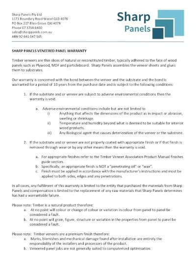 Sharp Panels Veneer Panel Warranty