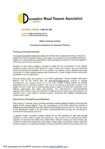 Decorative Wood Veneers Assoc Bulletin Care for Timber Veneer